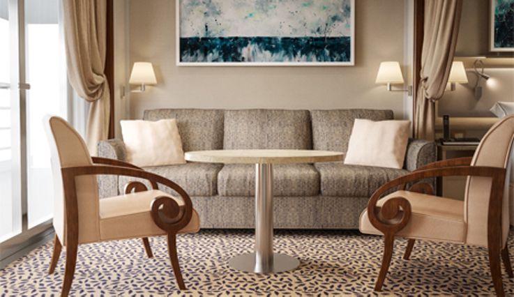 A Silversea signature, the Veranda Suite is spacious and welcoming. Floor-to-ceiling glass doors open onto a furnished private teak veranda from where you can contemplate anything from the midnight sun to an antarctic sunrise. Some Veranda Suites accommodate three guests (Suites going from 505 to 510